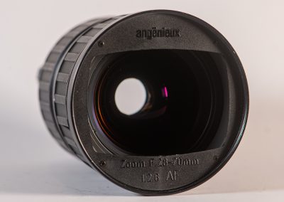 Zoom trans-strandart de la célèbre marque française d’objectif Angénieux, le 28/70 1:2,6 AF fut l’un des derniers fabriqué pour la photographie. Il avait fait l’objet, en 1984, d’une carte blanche aux éditions Contrejour. Les plus grands photographes de cette époque ( John Batho, Jean Dieuzaide, Eddie Kuligowski, Guy Le Querrec, Yan Morvan, Claude Nori, Olivier Perdrix, Christian Sarramon, Jeanloup Sieff, Georges Tourdjman, Martine Voyeux) l’avaient testé. Et quel résultat.