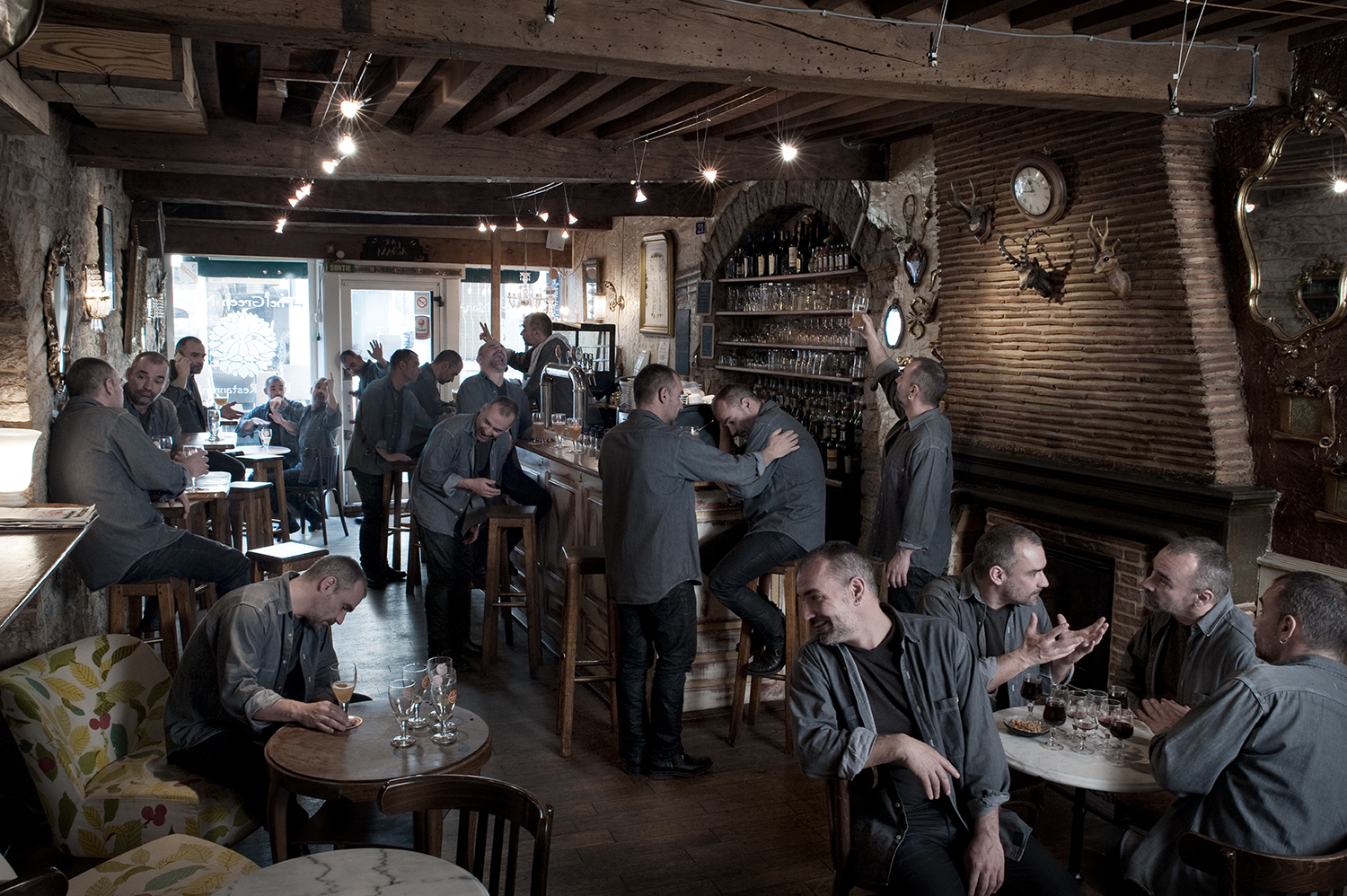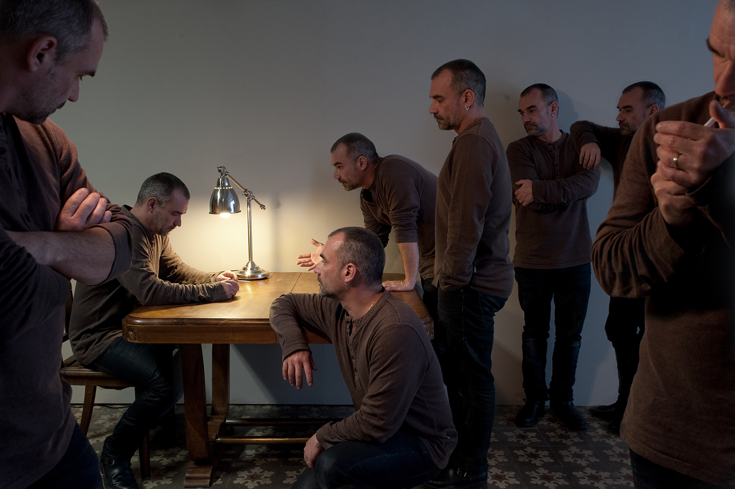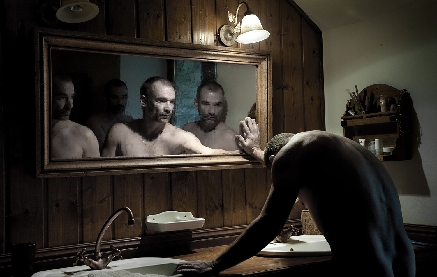 2011 – 2012 furent deux années bien difficiles pour moi, au point de ressentir le besoin me faire aider. Je fréquentais assidument à cette époque un bar de la rue Pasteur à Besançon dans lequel je rencontrais au détour d’une conversation un médecin psychiatre. Autour d’un verre, je lui ai fait part de mon tourment et avec toute la gentillesse qui était la sienne, ni une ni deux, en rendez vous à son cabinet était fixé. Lors de notre première entrevue, le médecin me conseilla de me munir d’un carnet que je ne quitterai pas afin de noter au moment opportun les émotions qui me blessent et pouvoir ainsi lui restituer à la prochaine séance mes sentiments dûment notés. Et ça, pour moi, ce n’était pas possible. Je me souvenais alors d’une photographie réalisée en 2006 dans laquelle je me mettais en scène, « celui qui posait pour la photo ». Je suis donc revenu à notre nouveau rendez vous avec un carnet aux pages vierges, mais aussi avec une photographie réalisée pour la circonstance, « celui qui buvait seul ». Quinze jours plus tard, je lui présentais « celui qui baissait la tête ».