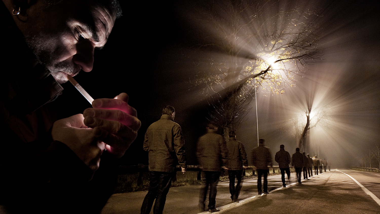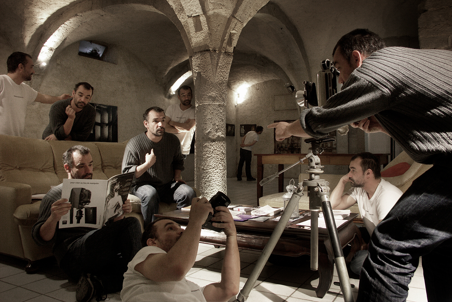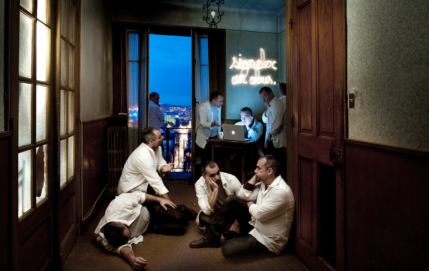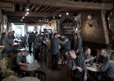 2011 – 2012 furent deux années bien difficiles pour moi, au point de ressentir le besoin me faire aider. Je fréquentais assidument à cette époque un bar de la rue Pasteur à Besançon dans lequel je rencontrais au détour d’une conversation un médecin psychiatre. Autour d’un verre, je lui ai fait part de mon tourment et avec toute la gentillesse qui était la sienne, ni une ni deux, en rendez vous à son cabinet était fixé. Lors de notre première entrevue, le médecin me conseilla de me munir d’un carnet que je ne quitterai pas afin de noter au moment opportun les émotions qui me blessent et pouvoir ainsi lui restituer à la prochaine séance mes sentiments dûment notés. Et ça, pour moi, ce n’était pas possible. Je me souvenais alors d’une photographie réalisée en 2006 dans laquelle je me mettais en scène, « celui qui posait pour la photo ». Je suis donc revenu à notre nouveau rendez vous avec un carnet aux pages vierges, mais aussi avec une photographie réalisée pour la circonstance, « celui qui buvait seul ». Quinze jours plus tard, je lui présentais « celui qui baissait la tête ».